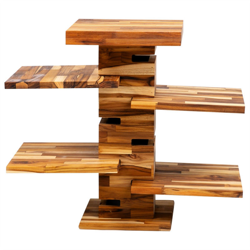 Torre buffet em madeira teca 100% natural, ideal para cafés da manhã e buffets em hotéis e restaurantes. Design sofisticado e funcional que economiza espaço e valoriza o ambiente.